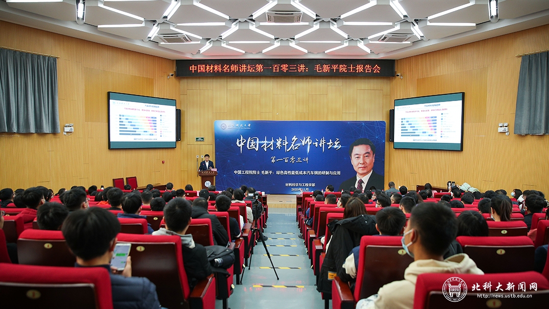 11月26日下午,中国材料名师讲坛第一百零三讲在学术报告厅举行,论坛邀请了中国工程院院士毛新平作题为“绿色高性能低成本先进汽车钢的研制与应用”的学术报告。